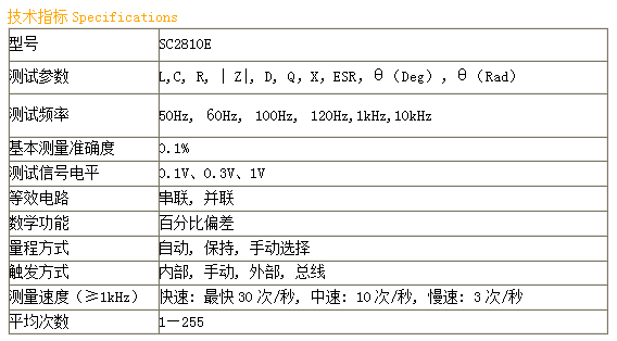 ■ SC2810E是一款高性能低价格的低端元器件测试仪。采用4.3寸真彩TFT显示器,使用户能更直观,更舒服的读出测试结果。强大的功能和简单的操作,50HZ-10KHZ多频率点以及0.1%的精度可满足生产线质量保证、进货检验及实验室测量要求。